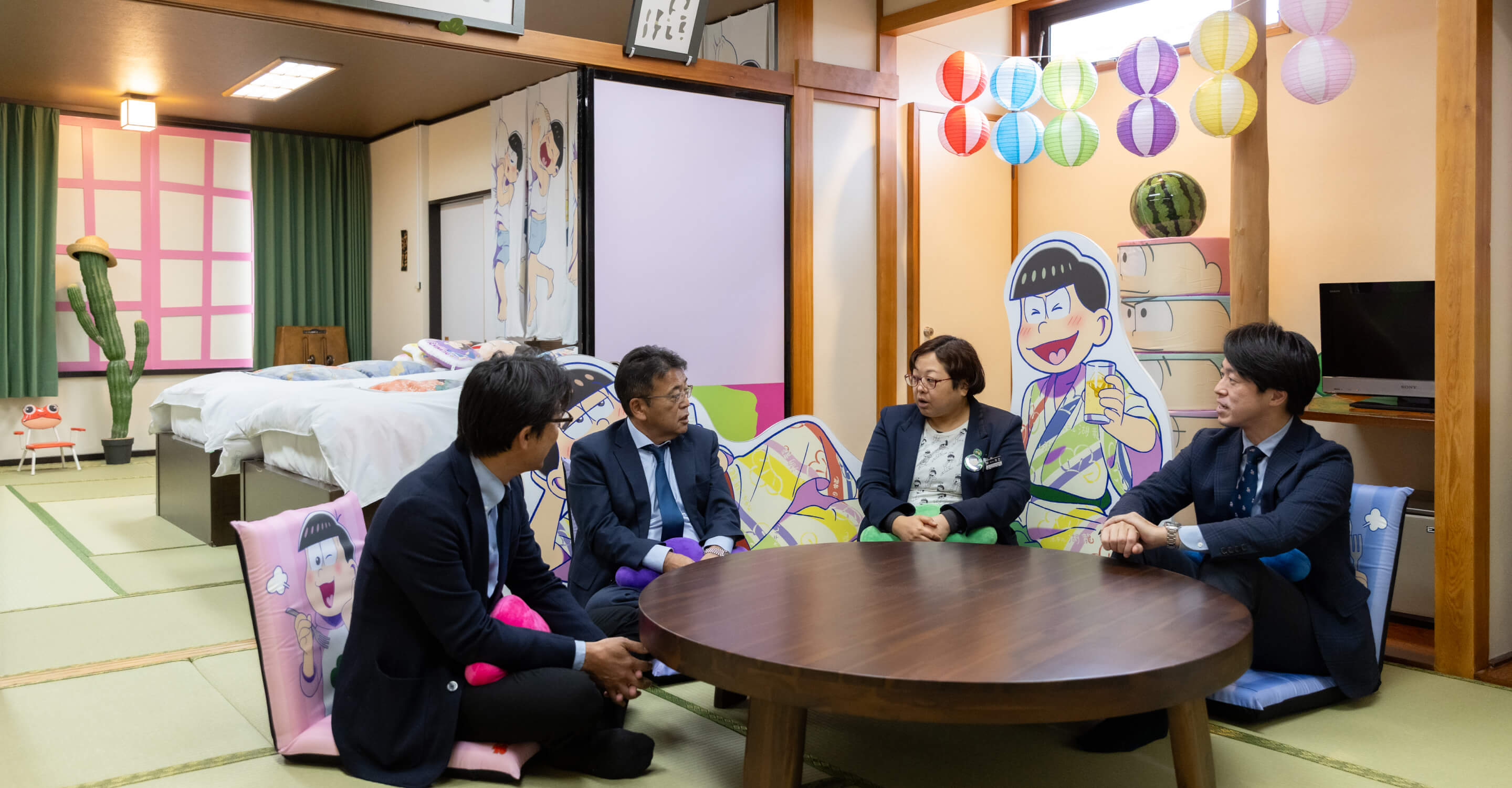 印象深かったのは、今回のストーリーのメインでもある「山梨・東京コネクト」で、スタジオぴえろ様とホテル湖龍様のコラボ案が立ち上がったときですね。構想の詳細をお伝えする前に、社長と2人でブレストをしてビジョンマップを書いたんです。ホテル湖龍様に来たお客さまにどのような気持ちになっていただきたいのか、そのためにどんな旅館を目指すのか。改めて「銀行員にはもっとこういう姿勢が必要だ」と、強く感じる時間でした。